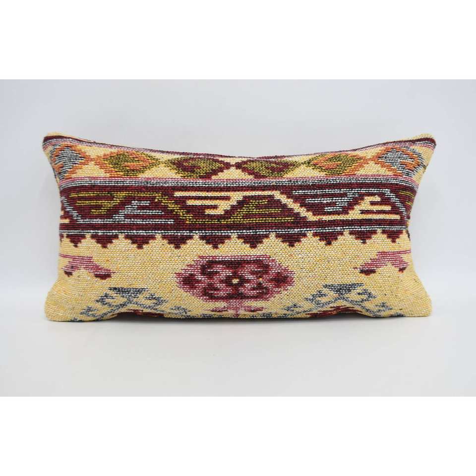 Coussin en laine brodé géométrique 12x24 pouces Beige Design de luxe avec motifs de feuilles de plantes florales vintage pour voiture ou maison