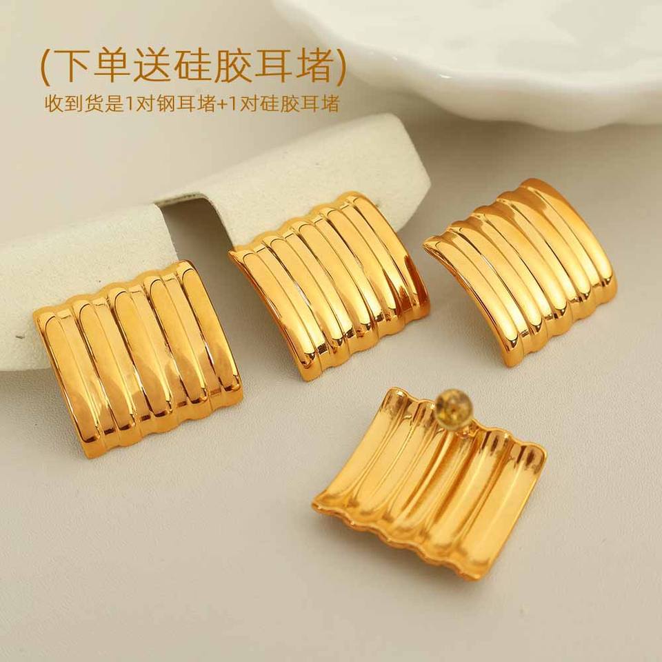 Boucles d'oreilles clous géométriques en acier inoxydable doré, motif carré ondulé, bijoux de mode