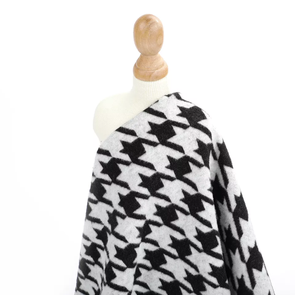 Tissu tricoté doux brossé en rayonne, polyester et élasthanne à motif jacquard pied-de-poule géométrique pour vêtements de garçons et de filles