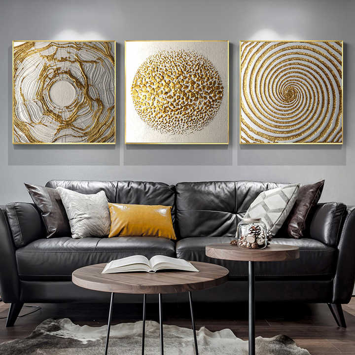 Motif géométrique Peinture sur toile Posters nordiques Impressions Art mural pour le salon Décoration intérieure Métal électrique Abstrait Noir doré