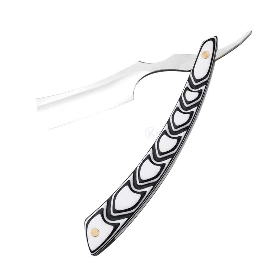 Rasoir à Lame Droite à Motif Géométrique Noir et Blanc, Rasoir Manuel en Acier Inoxydable, Outil de Toilettage Professionnel pour Barbiers