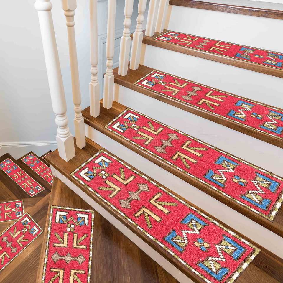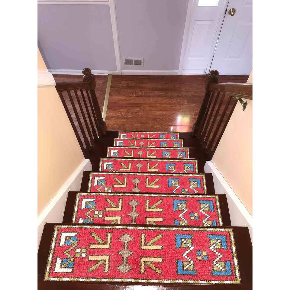 Tapis imprimé à motifs géométriques, marches d'escalier modernes vertes style aztèque, Gobelin