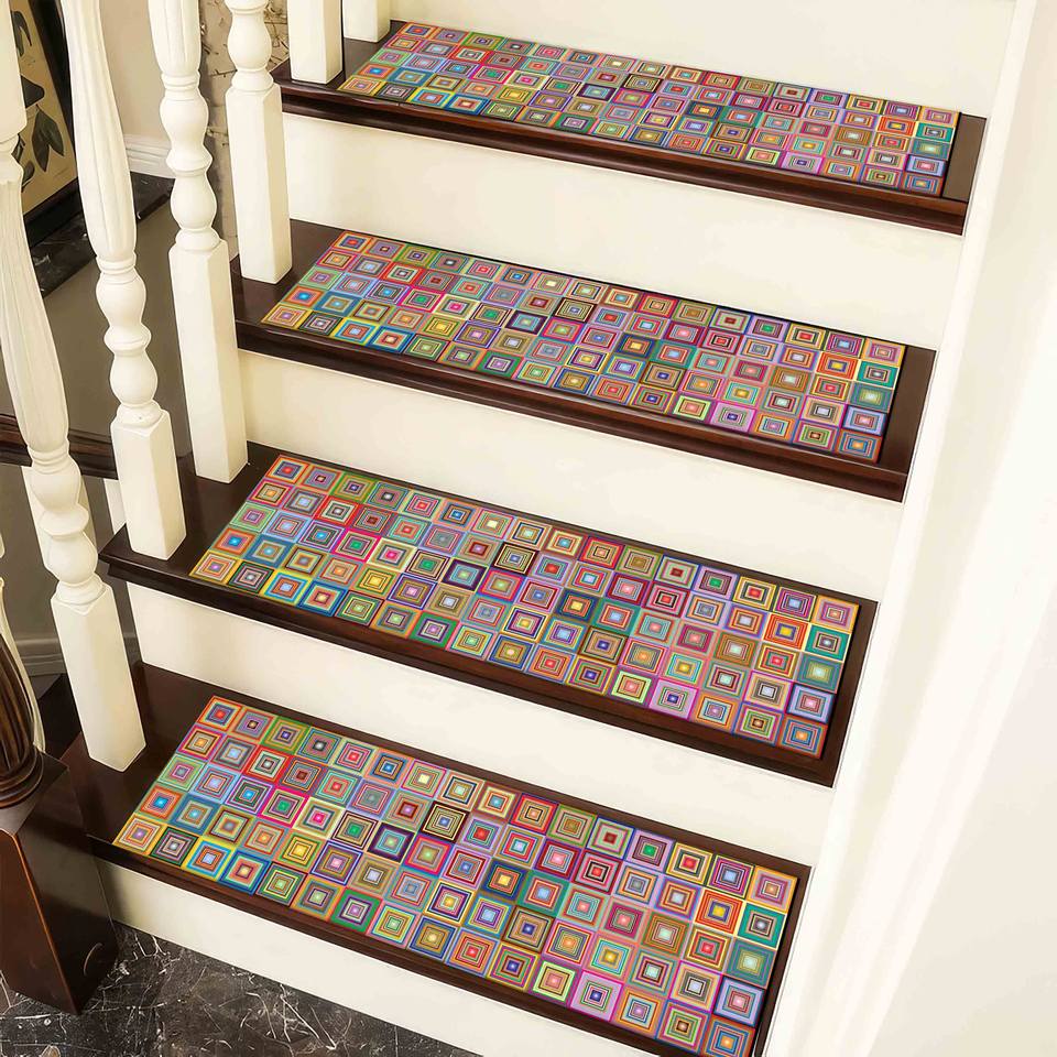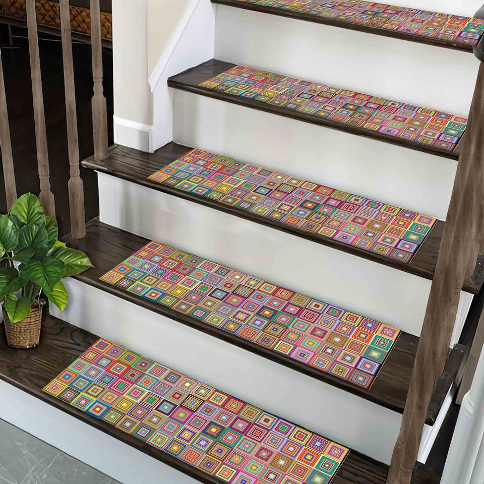 Tapis imprimé à motifs géométriques, tapis d'escalier moderne et coloré pour la décoration de la maison, tapis de marche