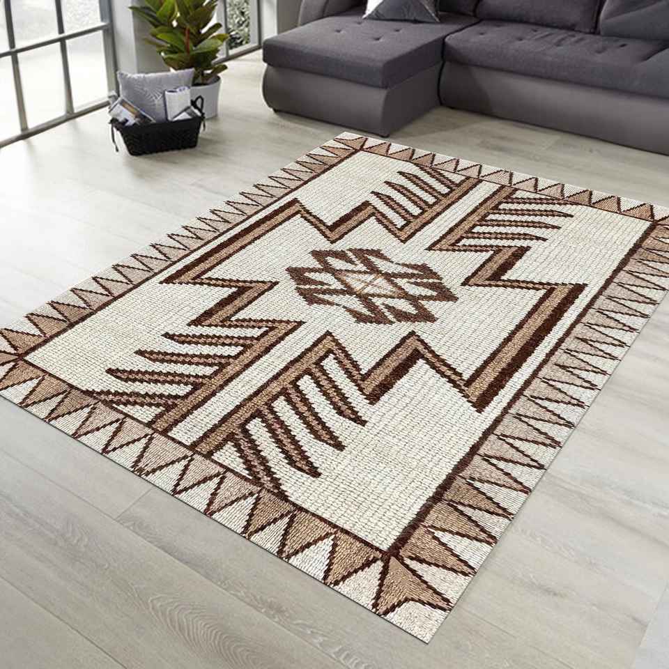 Tapis imprimé à motifs géométriques, design turc moderne, accent décoratif doux pour le sol, tapis à poils doux