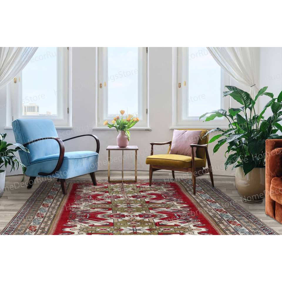 Tapis en laine imprimé patchwork, design tribal kilim écologique pour la décoration moderne, tapis gobelin avec dos en latex