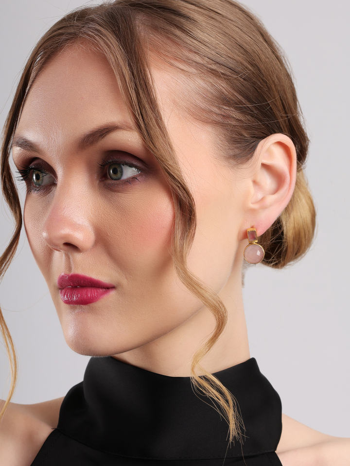 Boucles d'oreilles géométriques rectangulaires et rondes à facettes, couleur rose, design moderne minimaliste, élégantes, bijoux de mode, cadeau pour femmes