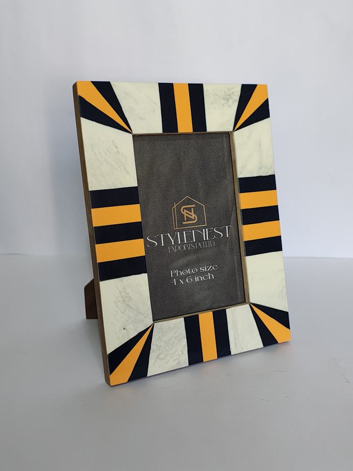 Cadre photo géométrique en résine jaune noir blanc motif incrusté de rayures Présentoir pour photos moderne 5x7 pouces Accessoire pour la maison