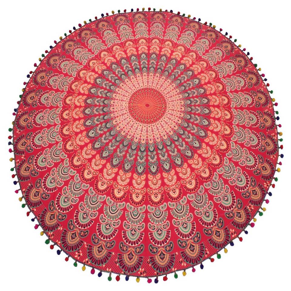 Tapisserie ronde géométrique Tenture murale Serviette de plage Tapis de yoga Décor bohème Mandala Jeté de plage rond Fabriqué en Inde