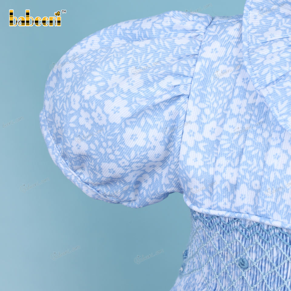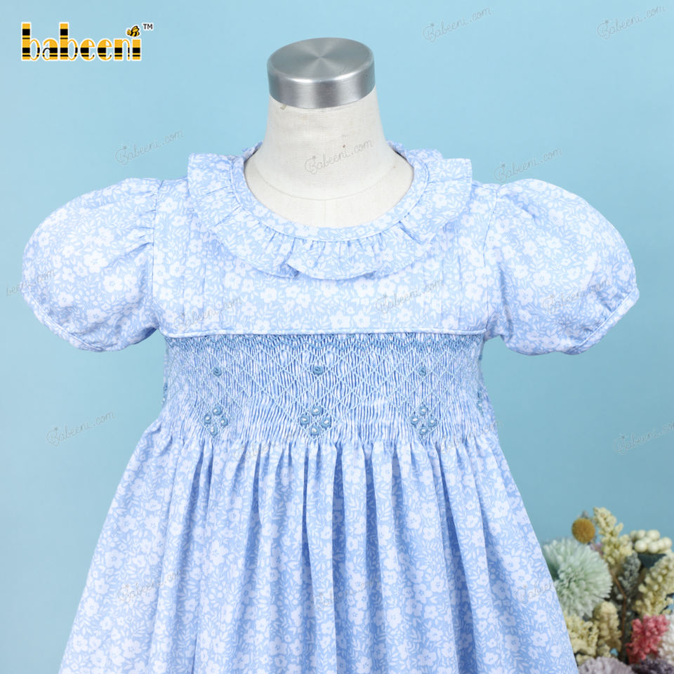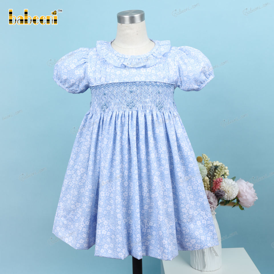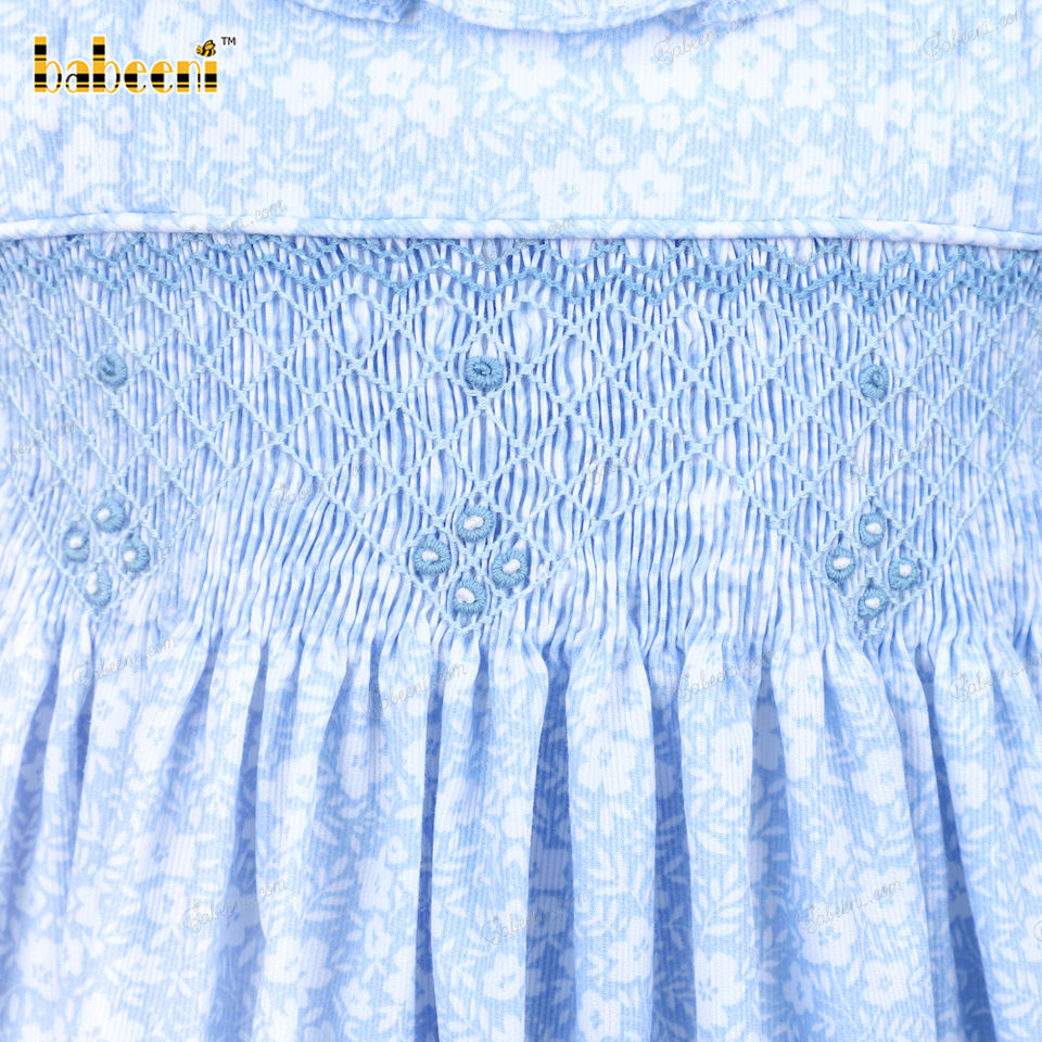Robe géométrique bleue filles bébé fille robes en gros smocké vêtements enfants vêtements en gros-BB3187