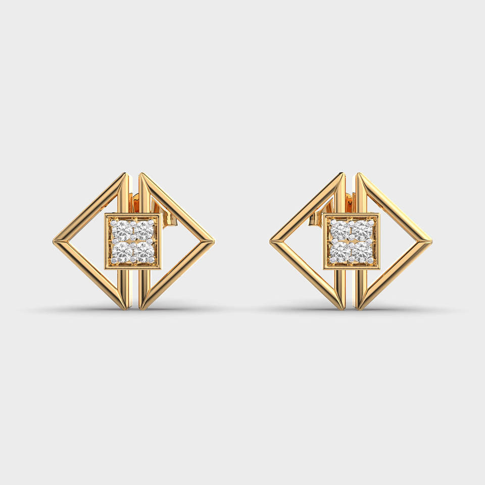 Geometric Square Lab Grown Diamond Stud Earrings 14K Rose/Yellow/White Gold IGI Certified Modern Design Anniversary Party Gifts