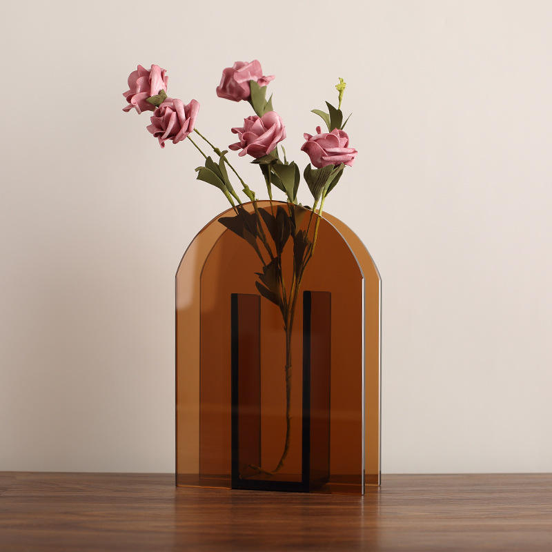 Vase en verre géométrique teinté, design moderne pour la décoration de la maison, salon, chambre