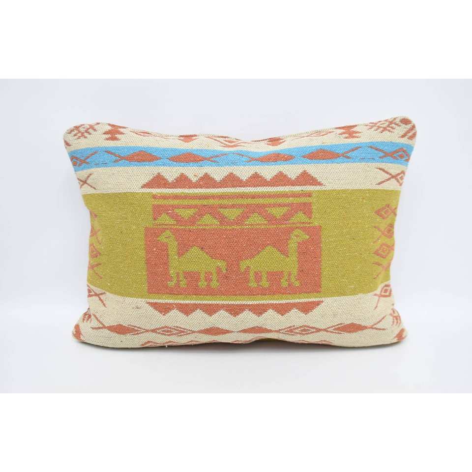 Coussin en laine géométrique 20x28 pouces Coussin vert avec motif vintage traditionnel Technique tissée imperméable pour le salon