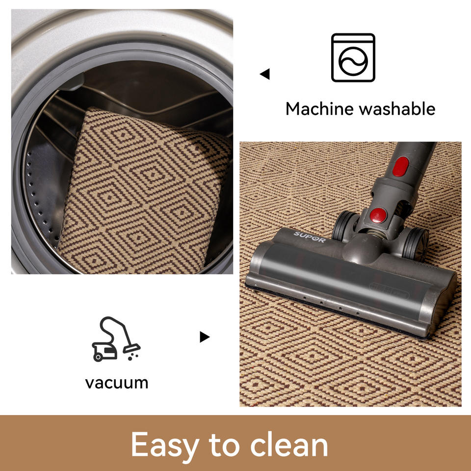 Tapis de cuisine géométrique tissé en polyester et coton, longue bande antidérapante pour couloir, marron
