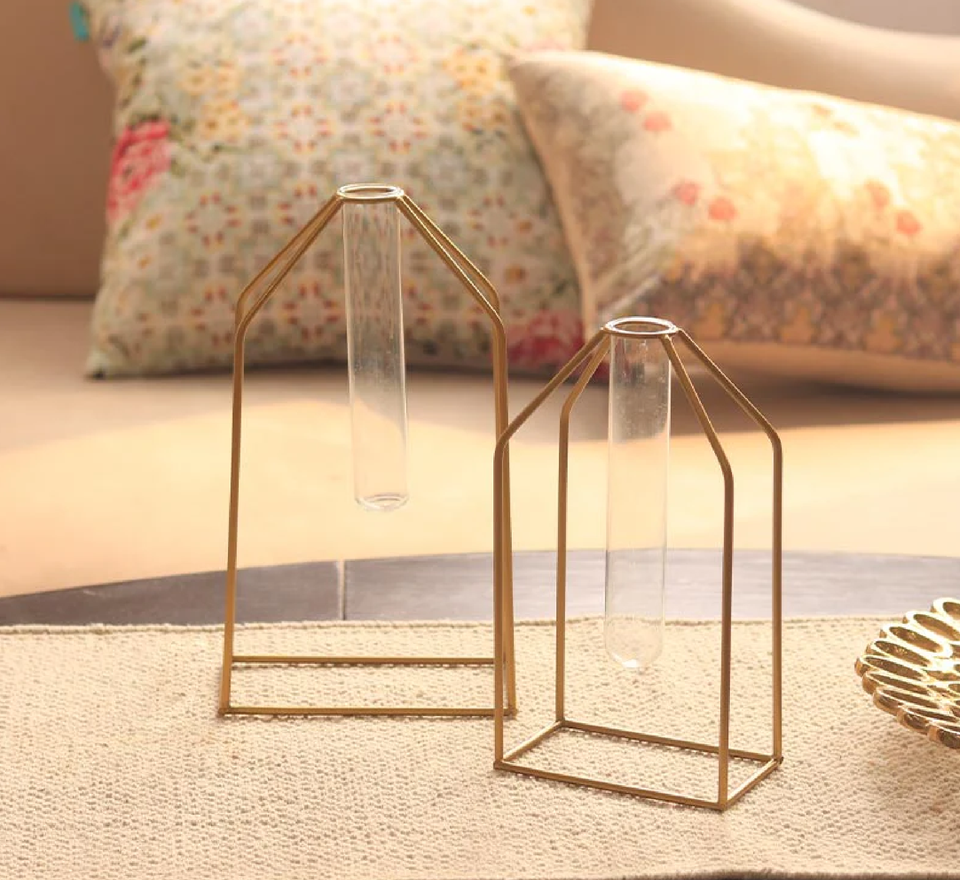 Ensemble de 2 vases géométriques pour éprouvettes en métal doré Décoration fonctionnelle du sol