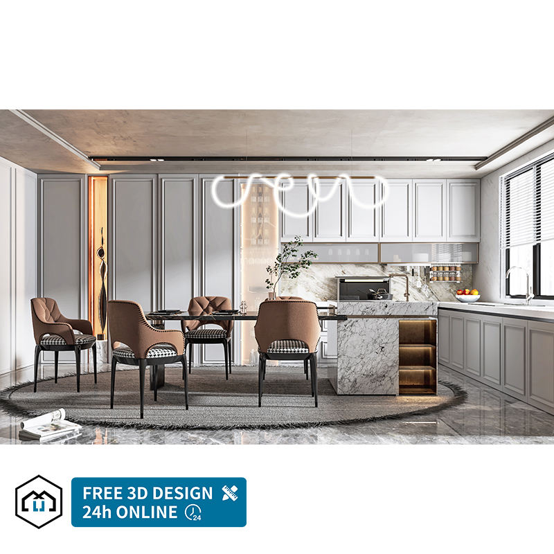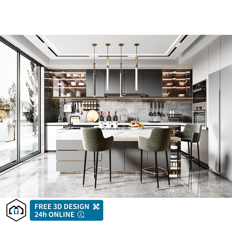Meuble de cuisine modulaire intelligent George Group, design moderne personnalisé, comptoir en quartz, placage bois stratifié, robinet