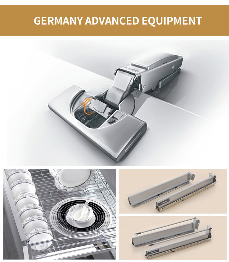 Accessoires:Conteneur de déchets, Charnière, Stockage à plateau tournant, Tiroir panier, Coup de pied, Dosseret, Poignée et bouton, Boîtes de riz, Coulisse, Cabinet de base d'évier, Robinet