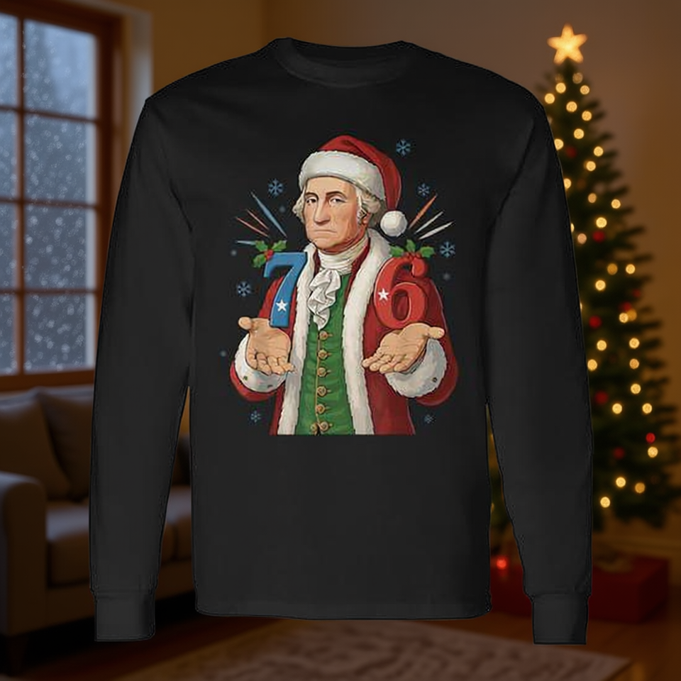 T-shirt à manches longues George Washington Santa 67 Meme Christmas