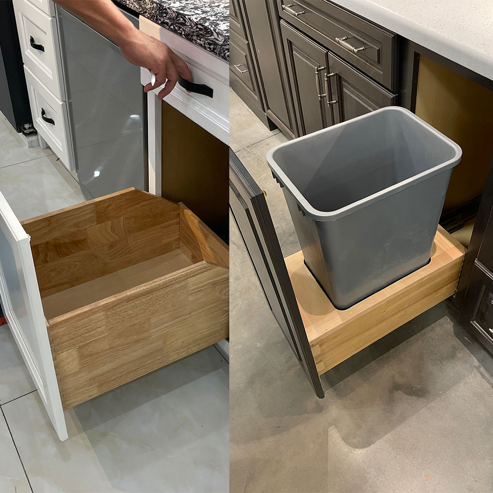 Tiroir panier, Coulisse, Robinet, Poignée et bouton, Charnière, Stockage à plateau tournant, Dosseret, Boîtes de riz, Cabinet de base d'évier, Coup de pied, Conteneur de déchets