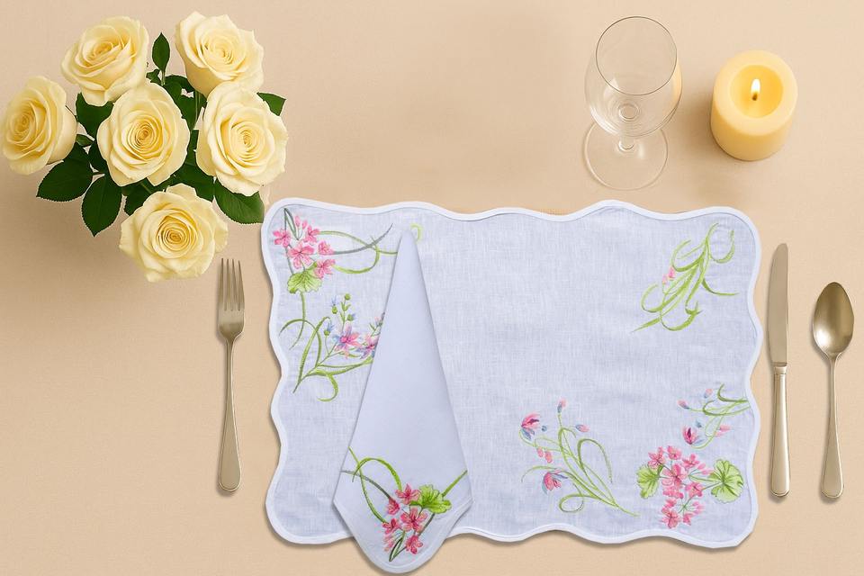 Serviette en lin 100% géranium | Serviettes de table réutilisables écologiques à motifs floraux pour la salle à manger, les mariages, les restaurants et l'usage domestique