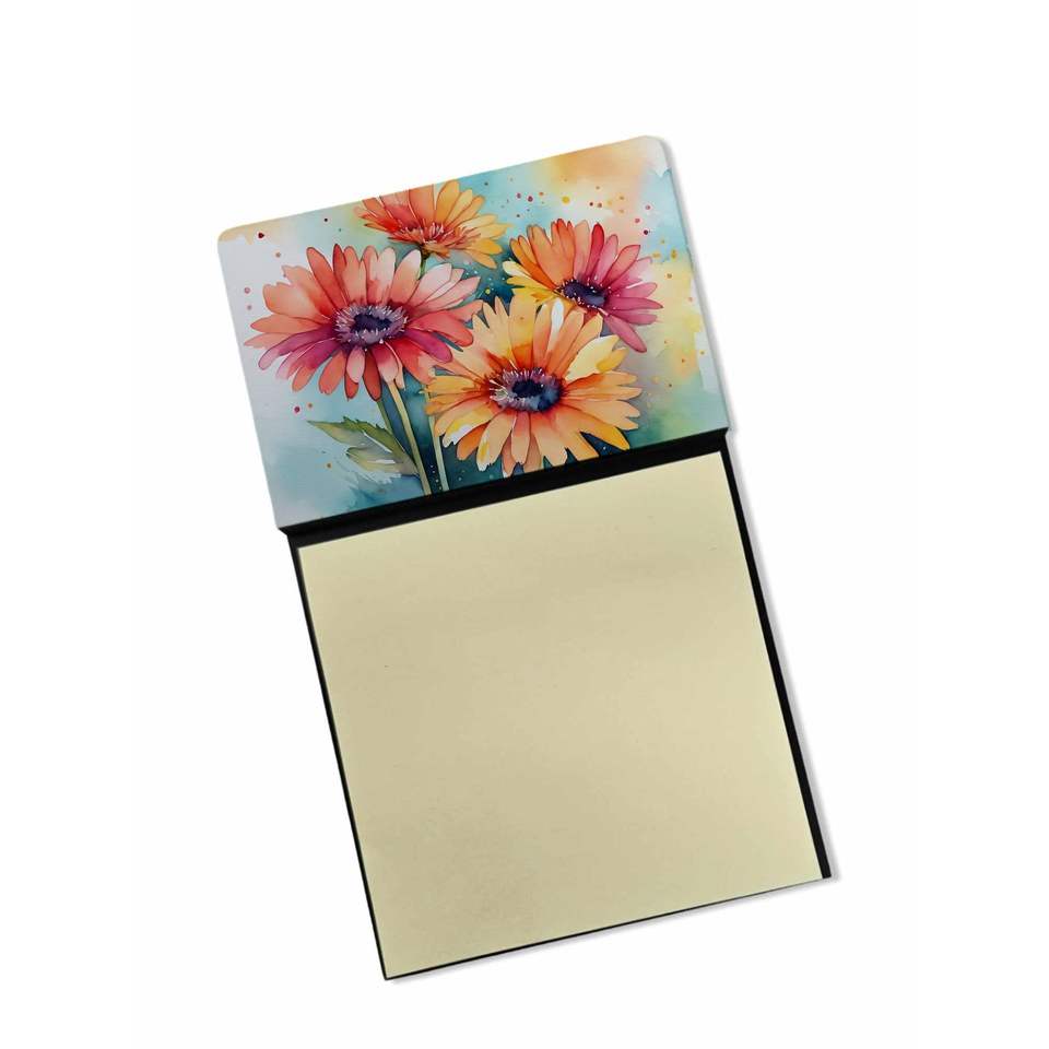 Gerbera Daisies Watercolor Self-Sticky Note Pads NEW Refillable Dispenser with Card Holder & Memo Pad Blank Desk Accessories