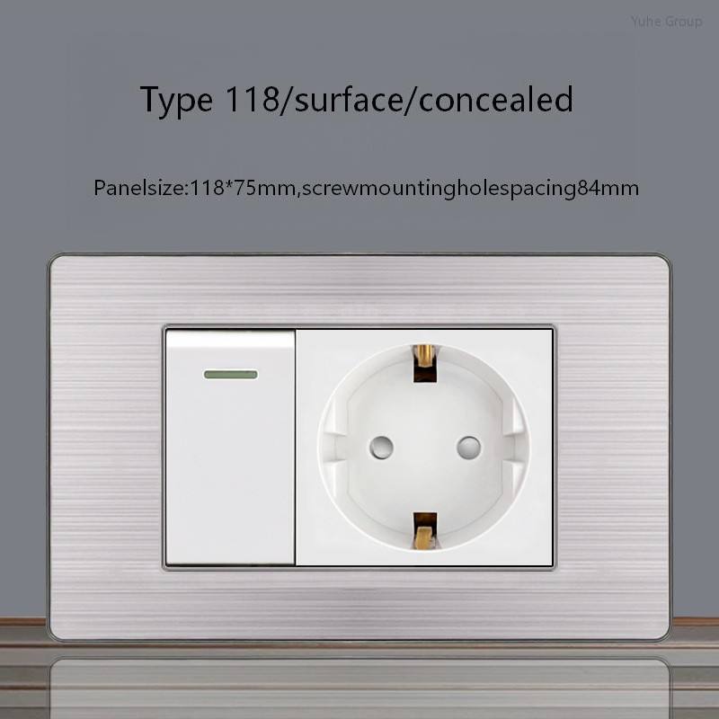 Module fonctionnel de panneau tactile brossé pour prise standard allemande UE avec interrupteur USB à charge rapide Type C 20A 4*2 4*4