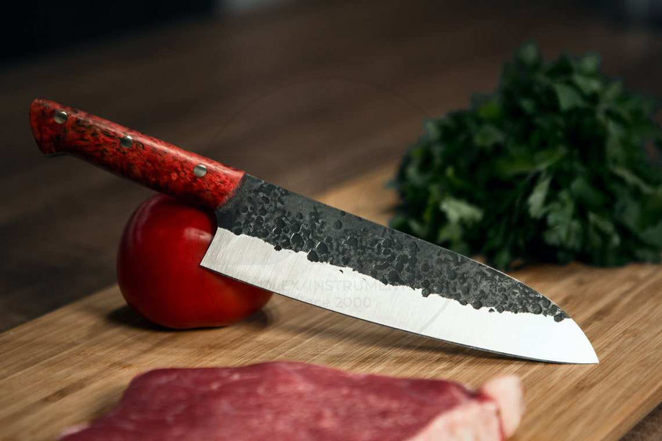 Couteau de chef allemand fait à la main Design industriel Style japonais Couteau de cuisine japonais Couteau de cuisine en acier au carbone Damas Manche en raisin