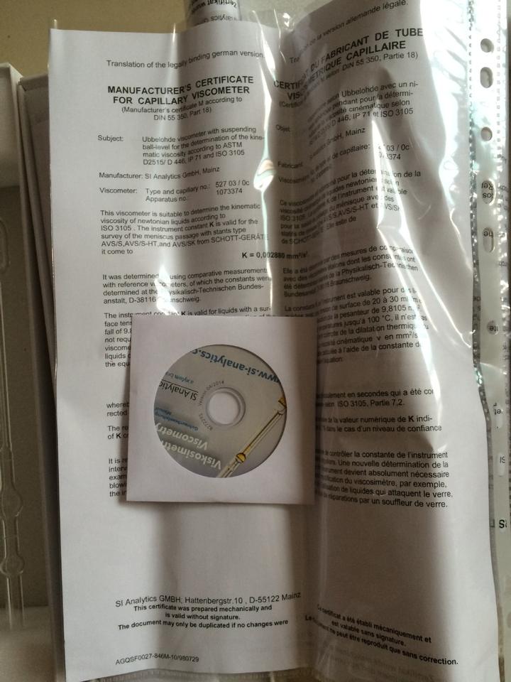 German SI Analytics Capillary Ubbelohde Viscometer 52510