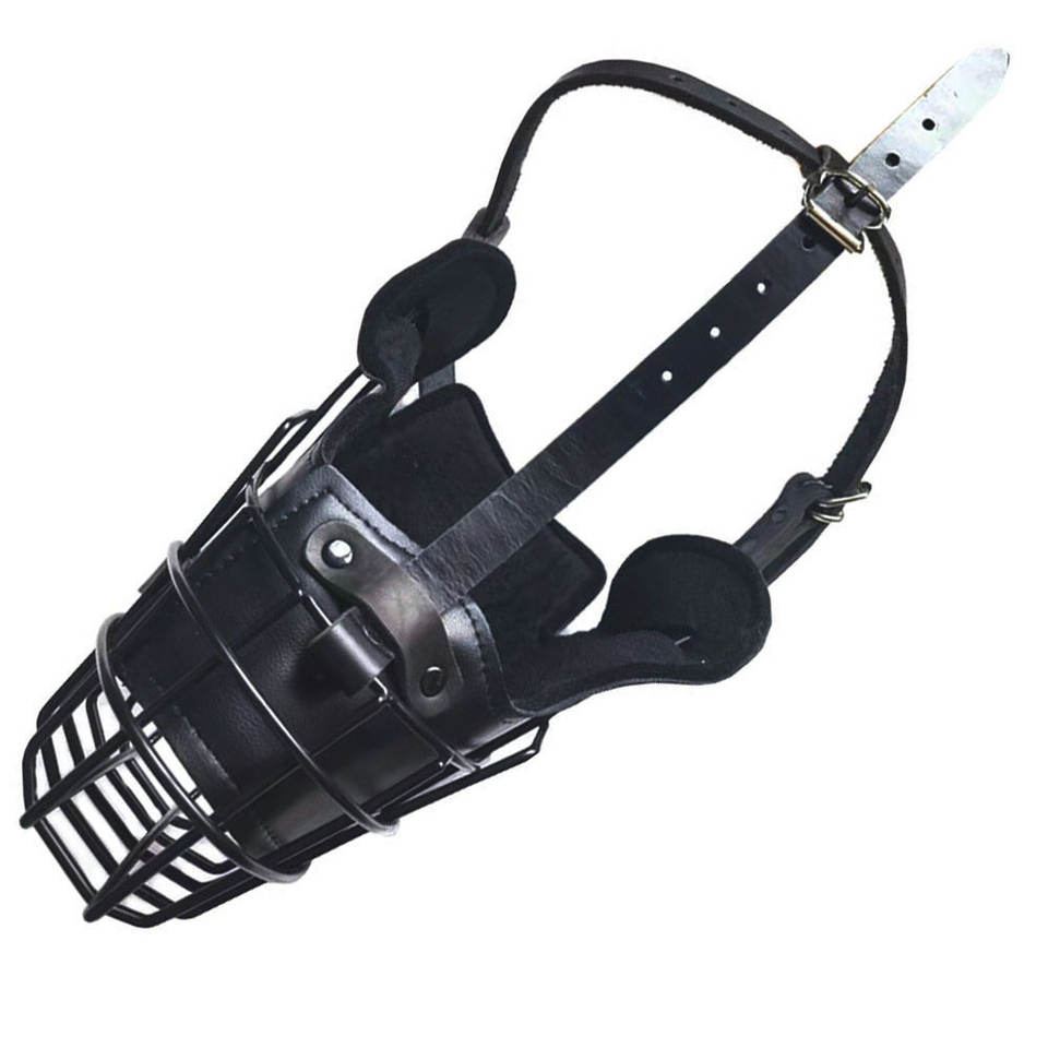 Muselière pour chien en métal et cuir, ajustable, pour berger allemand, avec panier en fil métallique.