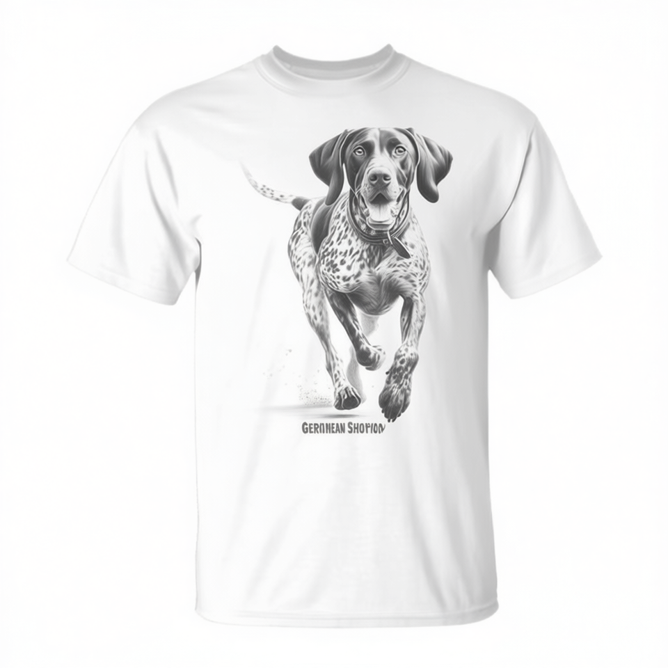 T-shirt blanc unisexe pour adulte, col rond, manches courtes, impression numérique, motif chien de course German Shorthaired Pointer