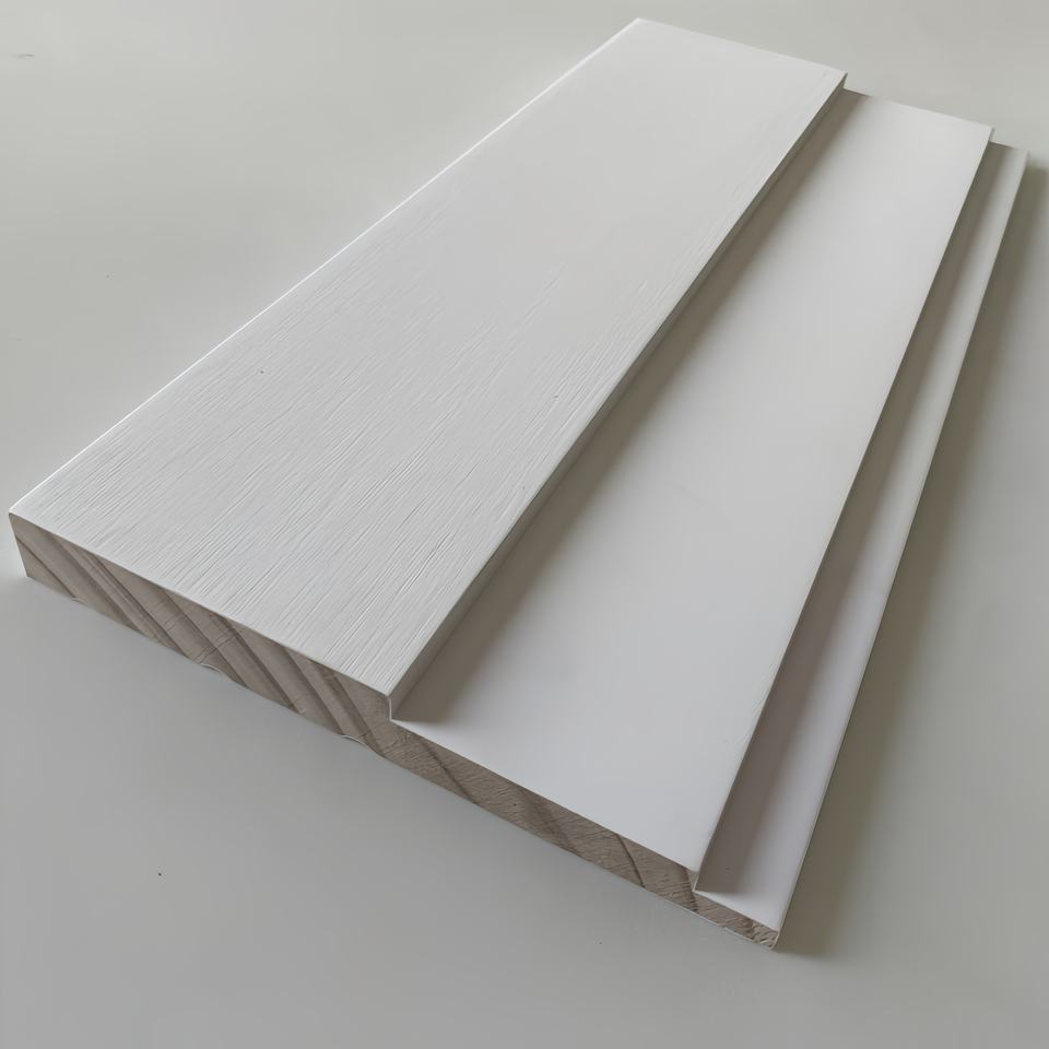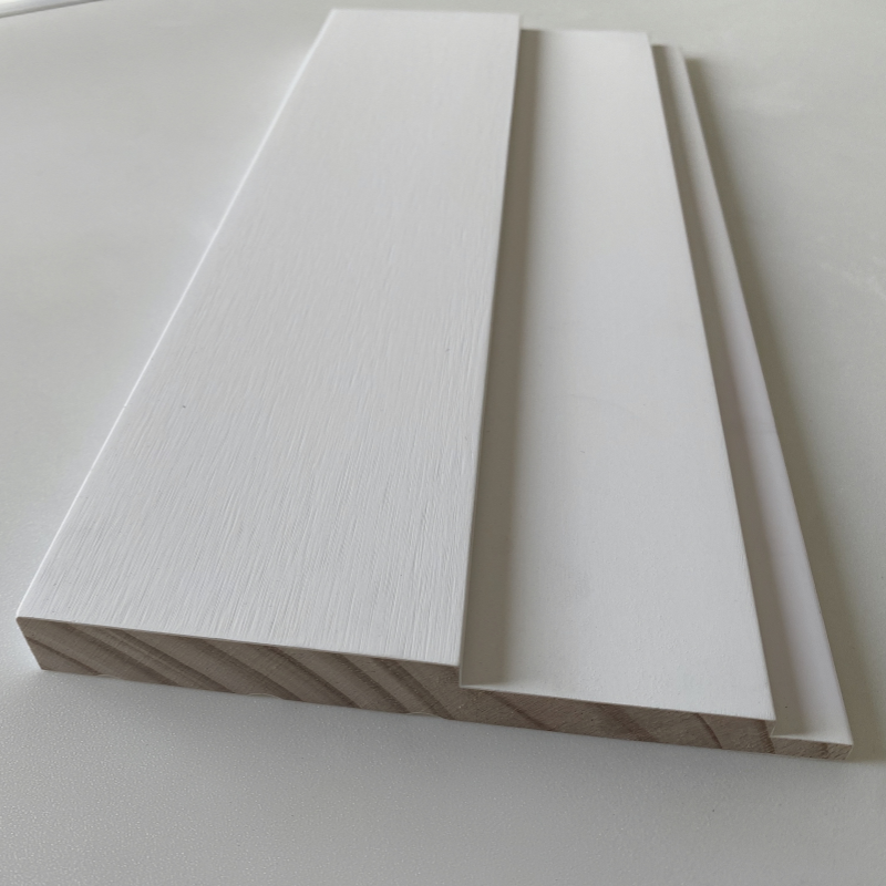 Nom:Plinthes et architraves en pin FJ à joints de doigt, apprêtées blanc
