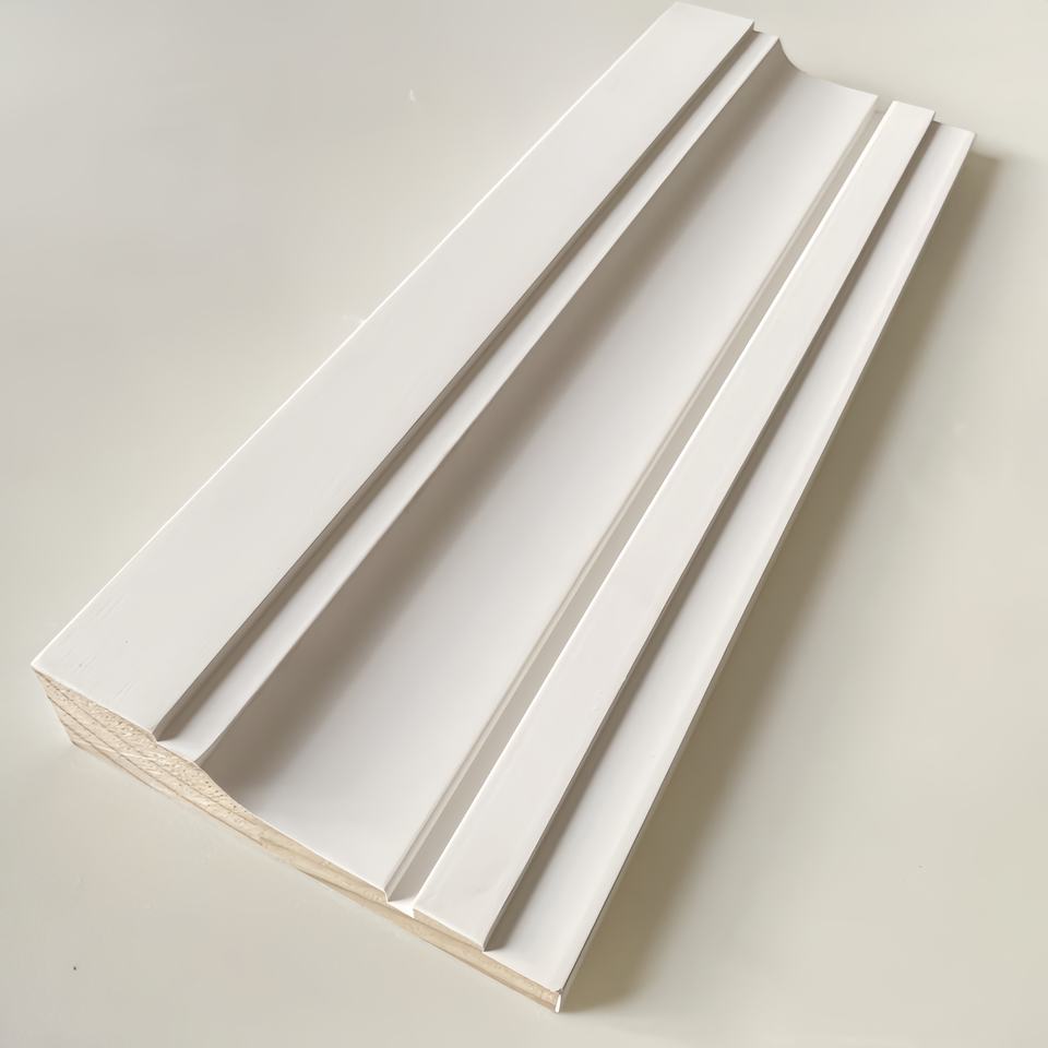 Nom:Plinthes et architraves en pin FJ à joints de doigt, apprêtées blanc