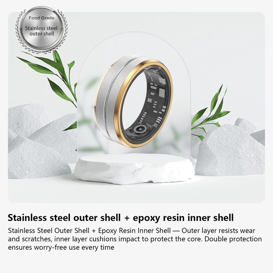 Bague connectée en alliage à commande gestuelle pour le suivi d'activité, contrôle de la caméra du téléphone, contrôle TikTok, rappel d'appels et de messages, synchronisation avec l'application, données de santé, IPX-7