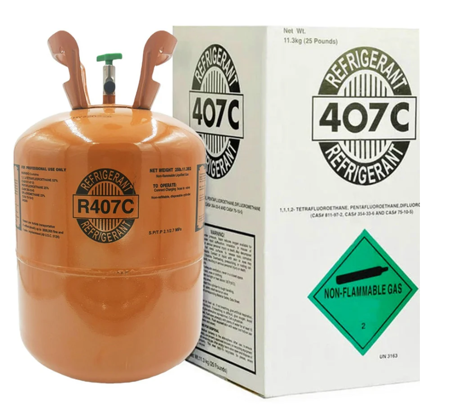 Obtenez du gaz R407C à 99,9 % de pureté, conteneur isolé de 11,3 kg pour systèmes HVAC résidentiels et commerciaux, en vente en ligne
