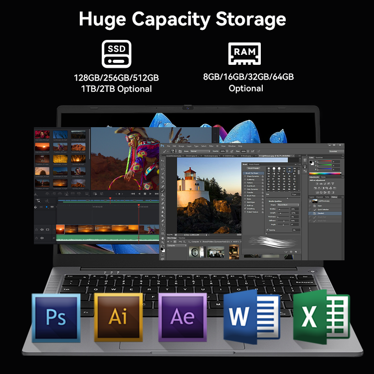 Ordinateur portable GetMi 140I OEM flexible et configurable avec double SSD et lecteur d'empreintes digitales pour la gestion de la sécurité des entreprises et le traitement des données