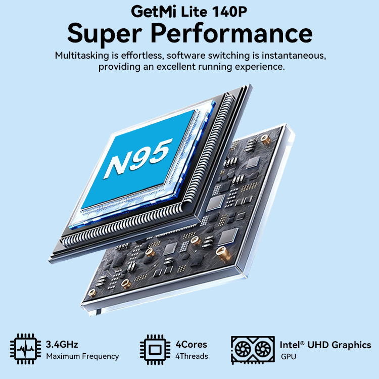 GetMi Lite 140P Tablette 2-en-1 pour ordinateur portable avec écran tactile 2240x1400 Nouveau Intel N95 RAM 32GB SSD 2TB Win 11 Clavier magnétique