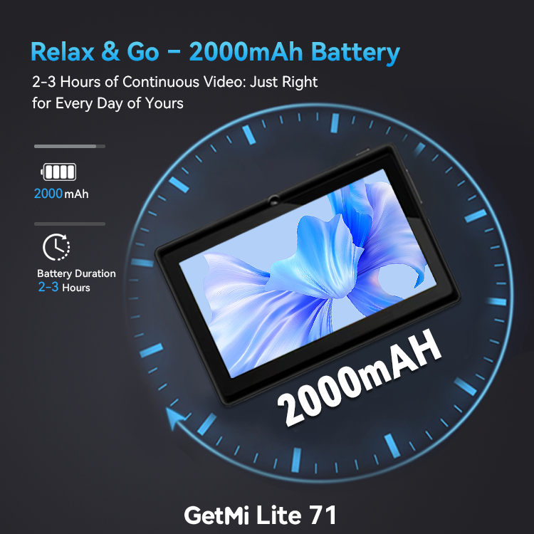 GetMi Lite 71 Tablette pour enfants de 7 pouces personnalisable et conviviale, sensible au toucher, adaptée aux enfants.