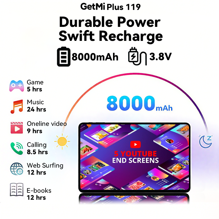 GetMi Plus 119 11.97 pouces G + G Incell Touch 1200*2000 8 Go + 256 Go BT 5.0 Appareil parfait Tablette PC