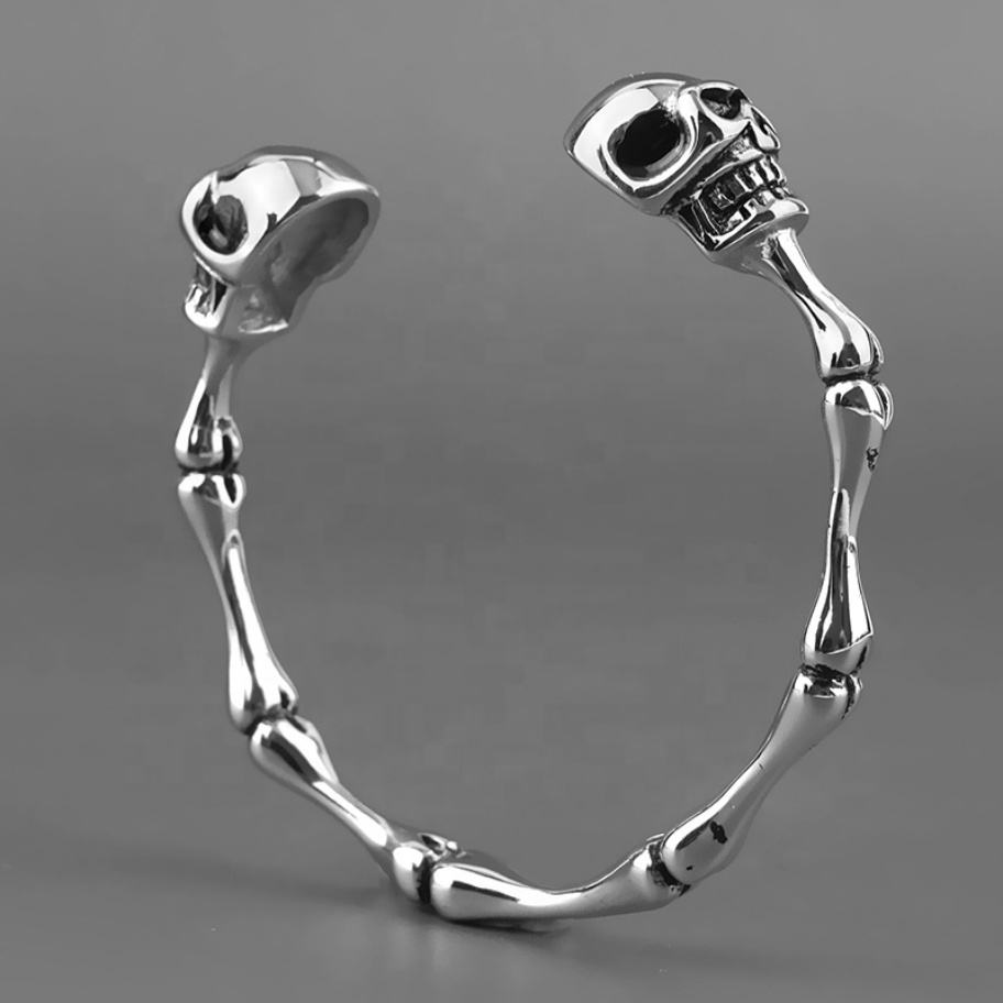 Bracelet manchette en acier inoxydable avec breloque tête de mort fantôme pour hommes – Prix de gros