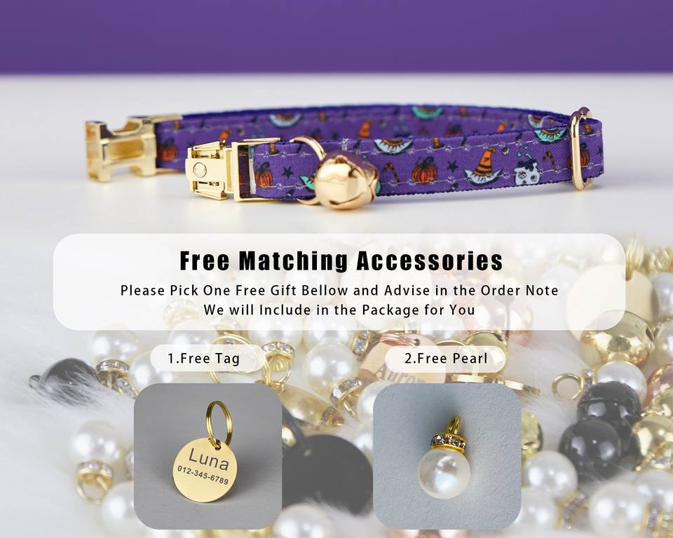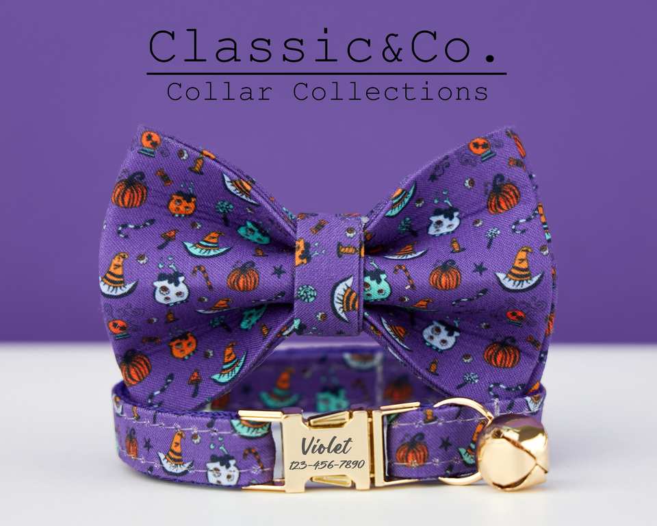 Ghost Pumpkin Halloween Day Cat pour mâle femelle, collier de chaton réglable violet Sier Bell and Buckle, petit chien Spooky Holiday