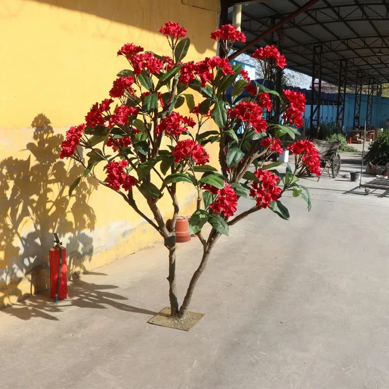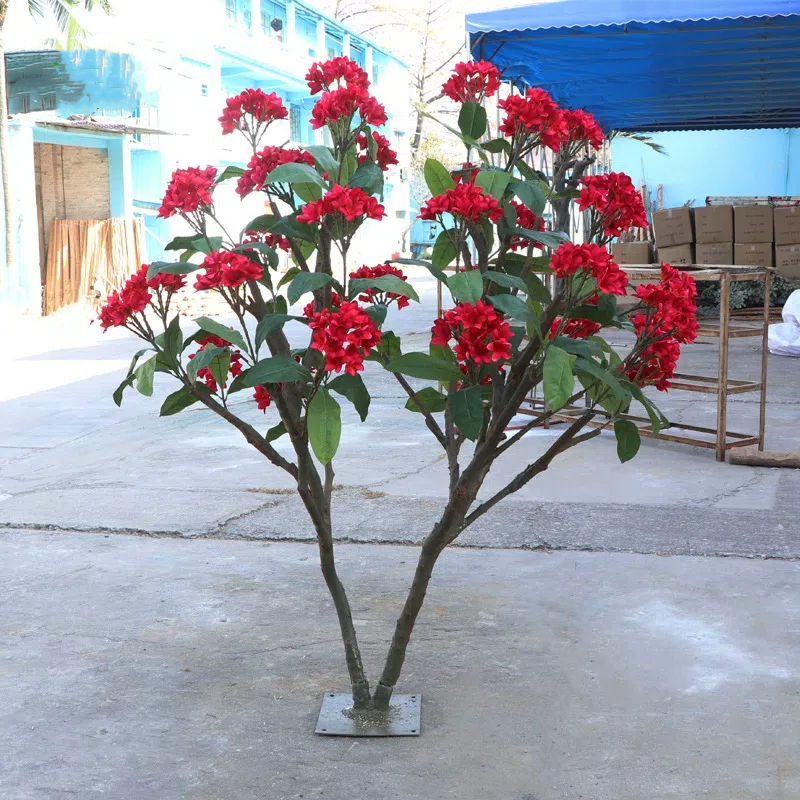Fleur Rouge Artificielle Géante Frangipanier Arbre à Fleurs pour l'Extérieur Hôtel Paysage Simulation Slik Arbre à Magnolia Rouge Artificiel