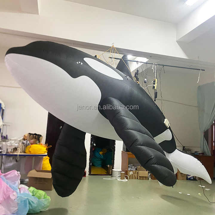 Baleine gonflable géante, noire, avec lumière, décoration suspendue pour fête de Concert