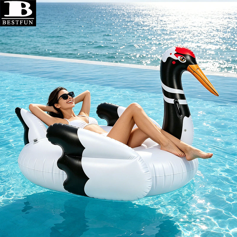 Bouée géante gonflable Grue à couronne rouge pour piscine, île flottante, jouet aquatique, décorations de piscine, accessoires photo pour les vacances d'été
