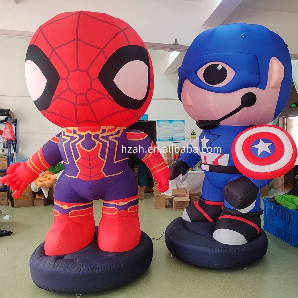 Personnages gonflables géants de dessins animés : Spiderman et Captain America
