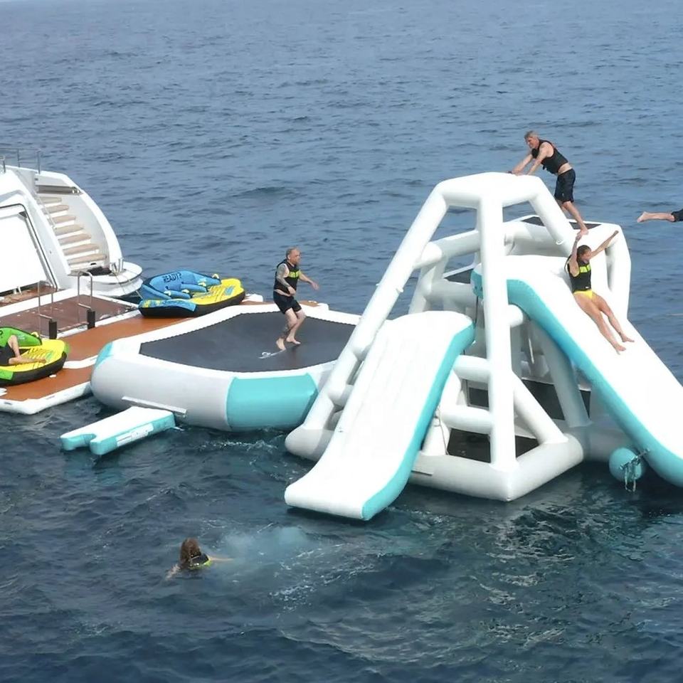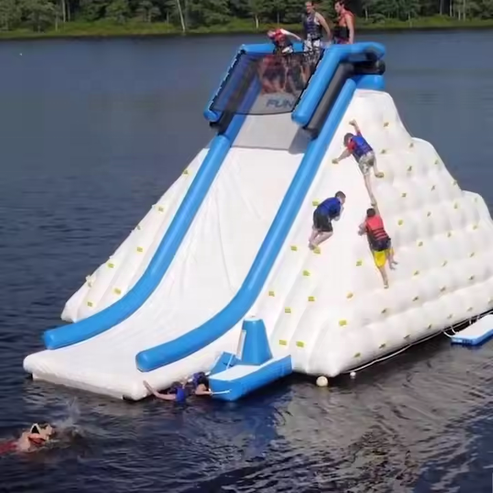 Tour de parc aquatique gonflable géant avec toboggan d'escalade et blob de saut