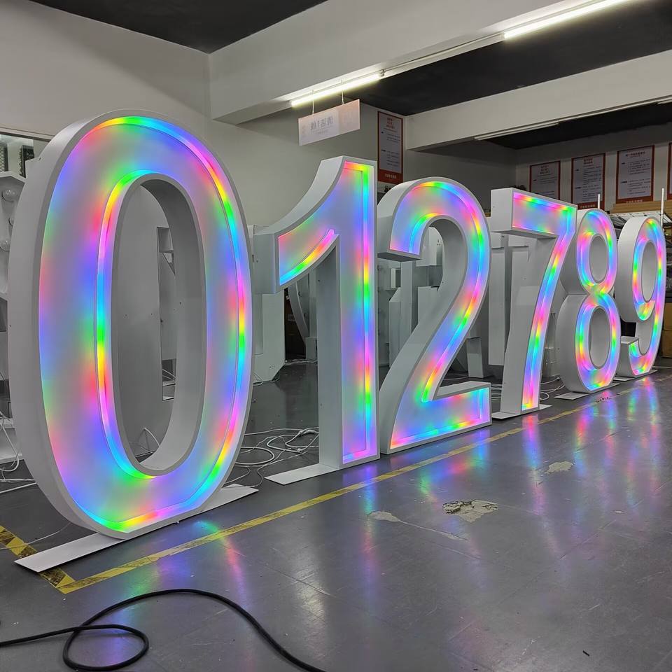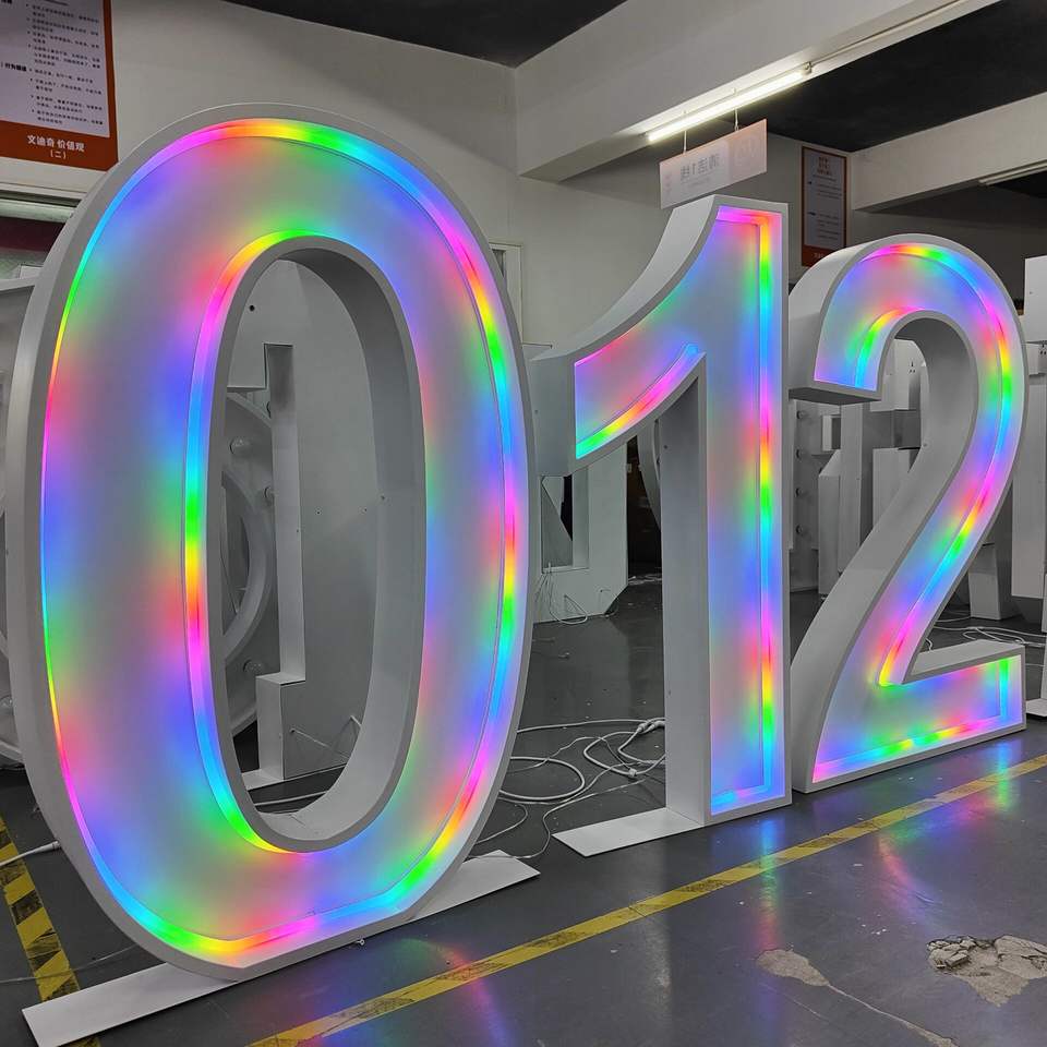 Numéro géant Néon Grand mariage Alphabet Marquee Lettres Led Neon Light Décoration Logo Sign Metal Frame