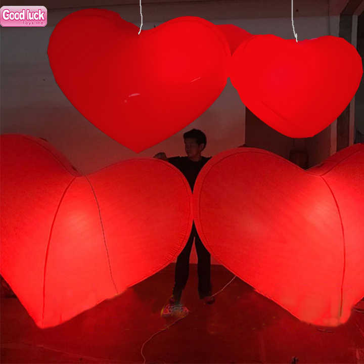 Boule géante en PVC Ballon rouge en forme de cœur pour décoration de centre commercial Éclairage de la Saint-Valentin Grandes LED gonflables publicitaires gonflables