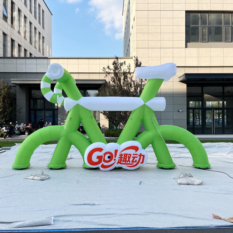 Ballon géant gonflable imperméable et durable en forme de vélo avec ventilateur intégré, couleurs et tailles personnalisables, installation facile pour la décoration d'événements