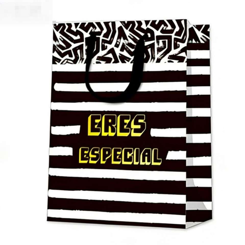 Sacs cadeaux avec poignées, 12 pièces, 26x32x12 cm, imprimés géométriques, phrases espagnoles assorties