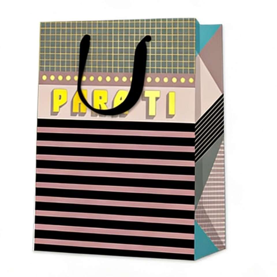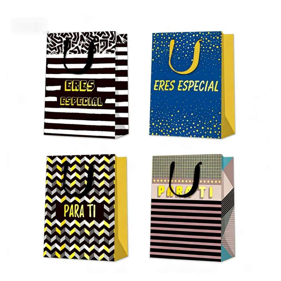 Sacs cadeaux avec poignées, 12 pièces, 31x42x12 cm, imprimés géométriques, phrases espagnoles assorties