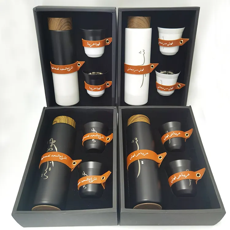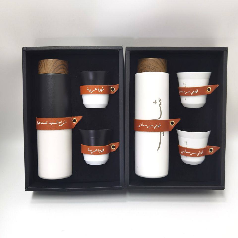 Boîte cadeau Thermos Tasse à double paroi en acier inoxydable Tasse en métal Tasses à expresso noires d'Arabie 80 ml Ensemble de tasses à café